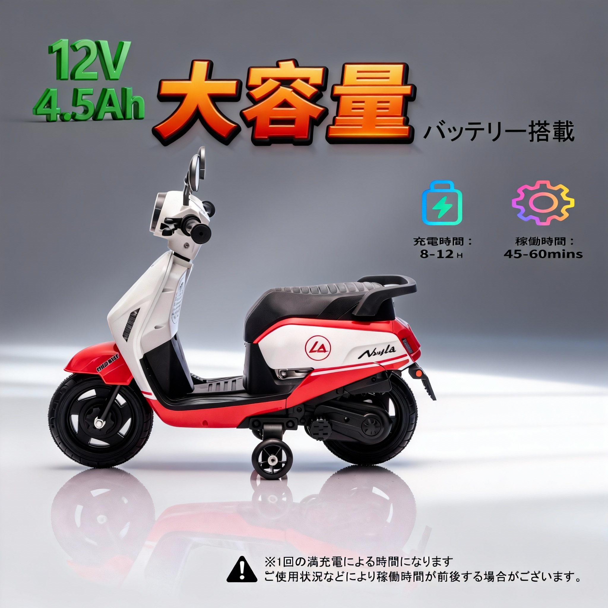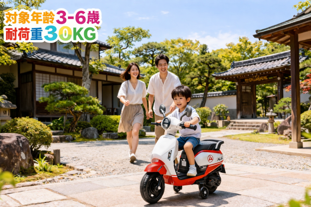 本製品は、3〜6歳のお子さま向け電動ライドオンバイクです。