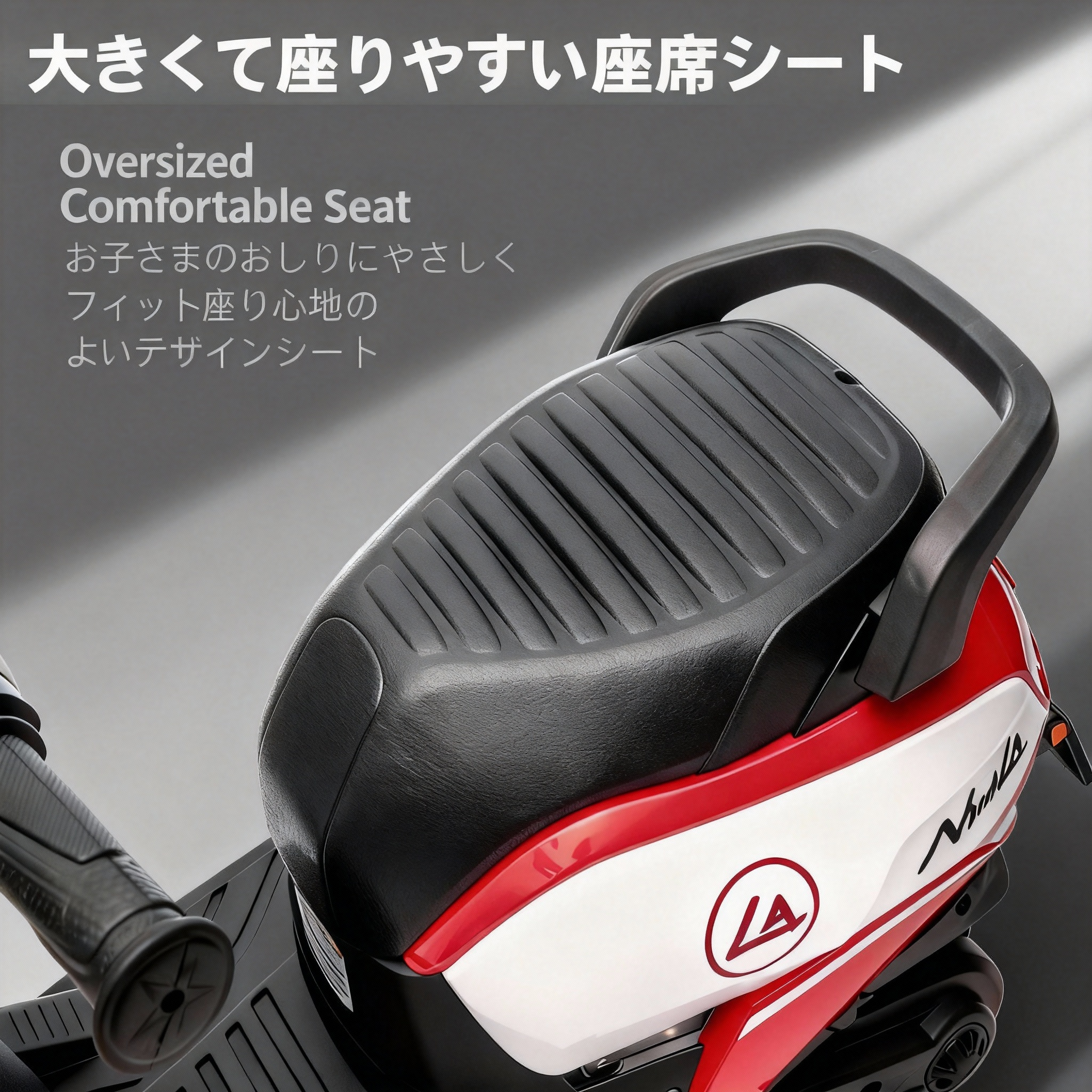 遊びながら操作感覚やバランス感覚を育てることができ、安定性を重視した設計により、お子さまにとって初めての電動乗用玩具として最適です。
